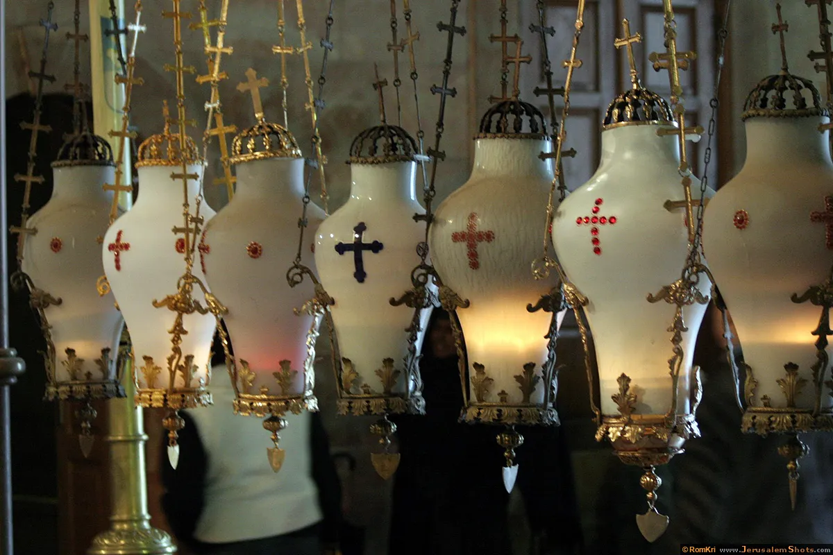\ Church of the Holy Sepulchre \ Lampadas - hanging oil lamps over the Anointing Stone - Church of the Holy Sepulcher