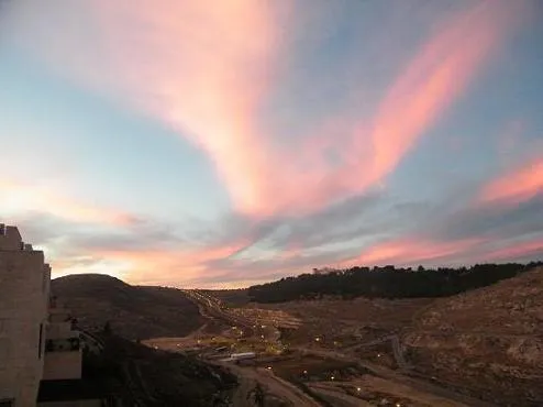 זוהר שקיעה מעל דרך חברון, צומת חומת-שמואל