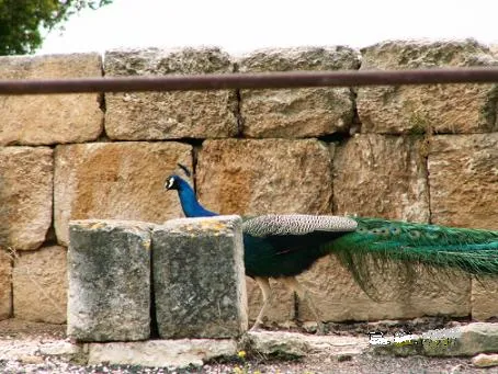 \ רמת רחל \ טווס מטייל בעתיקות מימי בית ראשון
