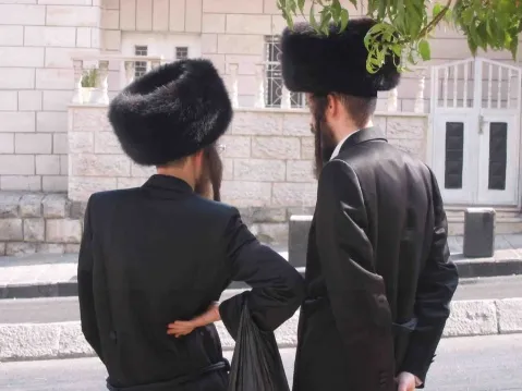 חסידים ירושלמים מחכים לקו 1 בחזרה מהכותל.