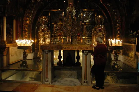 Praying at the Altar of the Crucifix in the Church of the Holy Sepulchre