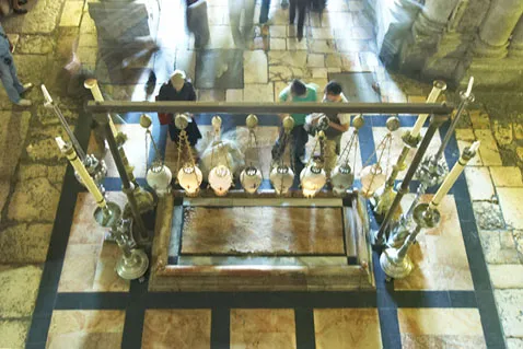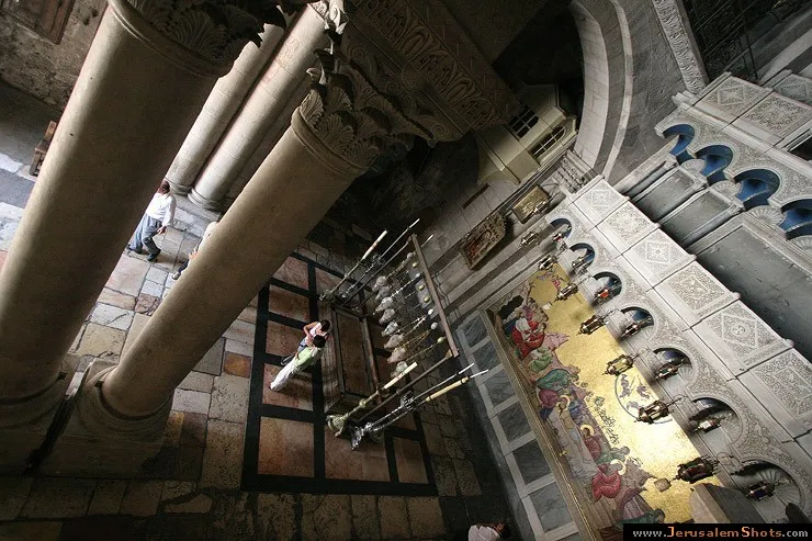 Church of the Holy Sepulchre \ Anointing Stone from above - Holy Sepulcher