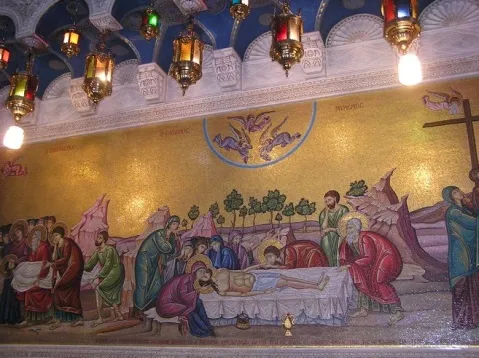 Church of the Holy Sepulchre \ Mosaic over Anointing Stone - Holy Sepulcher