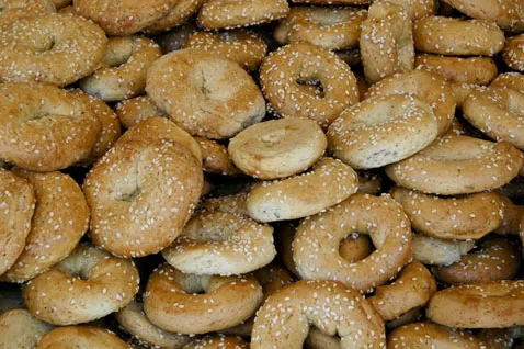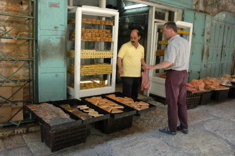 The Mahane Yehuda Market in Jerusalem is filled with all kinds of temptations. This tray of bagels caught my eye, but the smell of fresh baked goods was even more of an attraction.