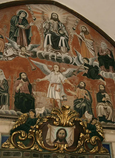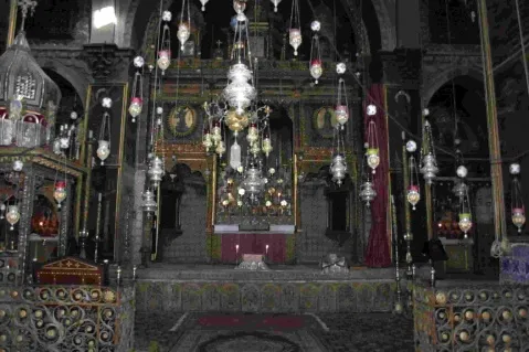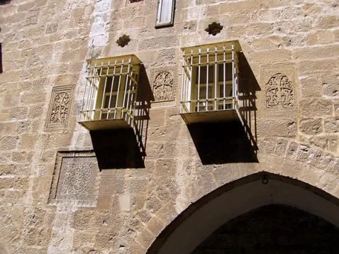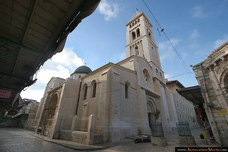 A view of the stone architecture of the beautiful St. James Cathedral in Jerusalem.
