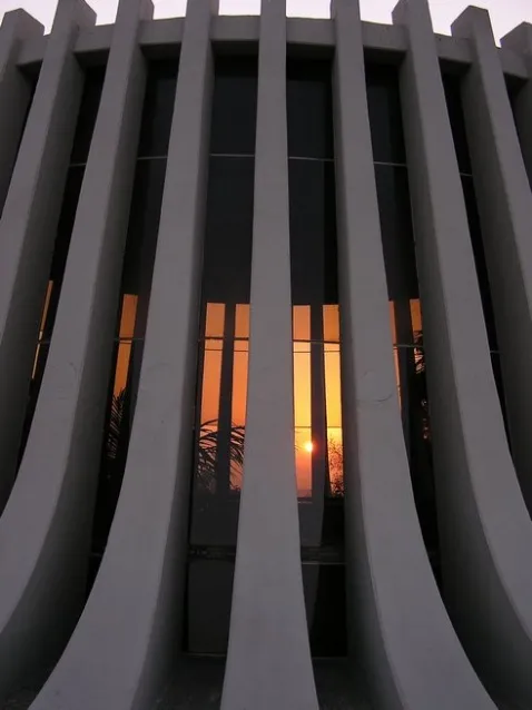 The monument was built in 1966 with funds donated by Jewish communities in the USA. It is encircled by 51 columns, each bearing the emblem of a state (50 states and the District of Columbia).