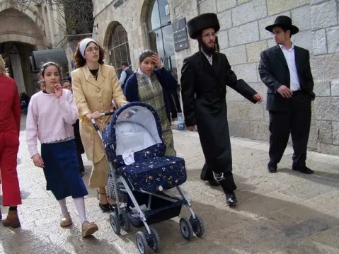 A typical orthodox Jewish family walking through the Jaffa Gate