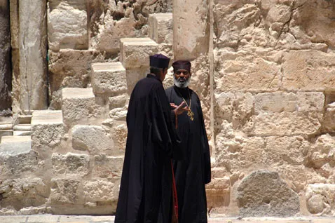 Priests in the courtyard of the Church of the Holy Sepulchre