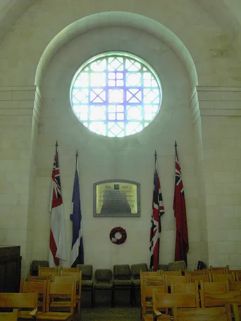 The chapel was built between 1919 and 1924 using funds donated from many different countries. The respective coat-of-arms of each donating country are incorporated into the glass of the ceiling, each in a separate, small dome, and also into the interior mosaics. The countries honored in this way are; starting from the left side, beginning with the apse: Argentina, Brazil, Chile and Mexico; in the middle of the church are memorialized: Italy, France, Spain and the United Kingdom, and to the right: Belgium, Canada, Germany, and the United States of America. The mosaics in the apses were donated by Ireland, Hungary, and Poland. The crown around the bedrock itself was a gift of Australia. These multi-national donations give the church its present title as the Church of "All Nations".