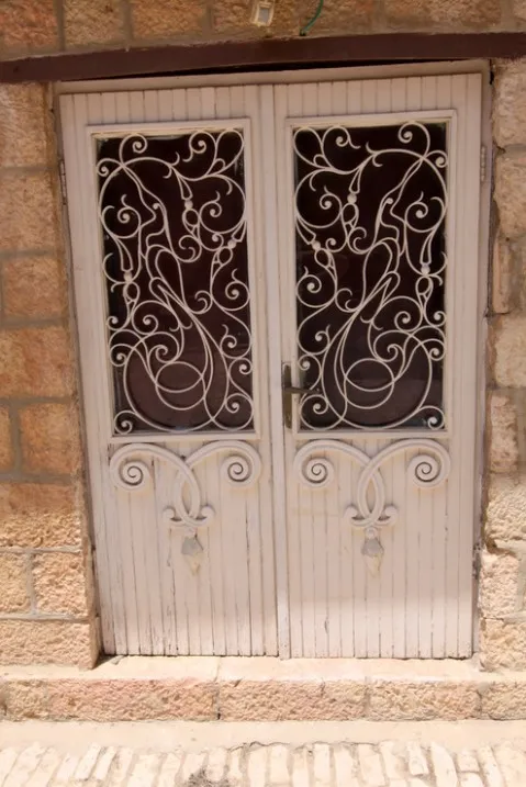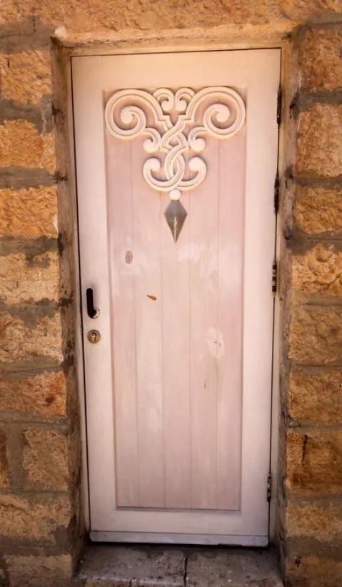 A narrow stone alleyway leads up a set of steps to an arched wooden doorway. Warm light spills out from the interior, contrasting with the rough stone walls of the historic quarter.