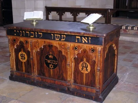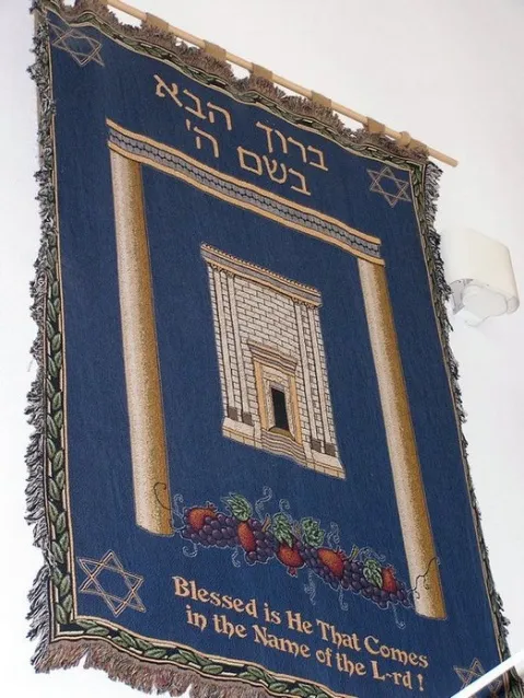 עיטור קיר על בית ברחובעזרא הבית מכונה בית המשיח, הוא כל כך מפוארשחשבו שהמשיח יגורבו כשיבוא. כיום הוא משמש בית ספר. צילום נופי דדוש