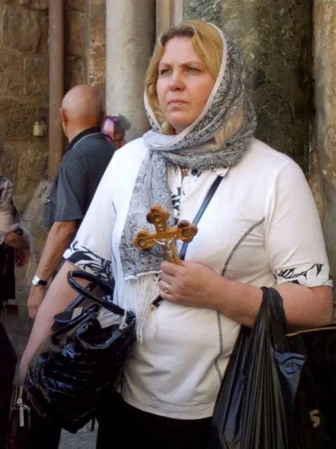 מסגד-כנסיית העליה א תור. ציללנים רוסים מתפללים. צילום נופי דדוש.